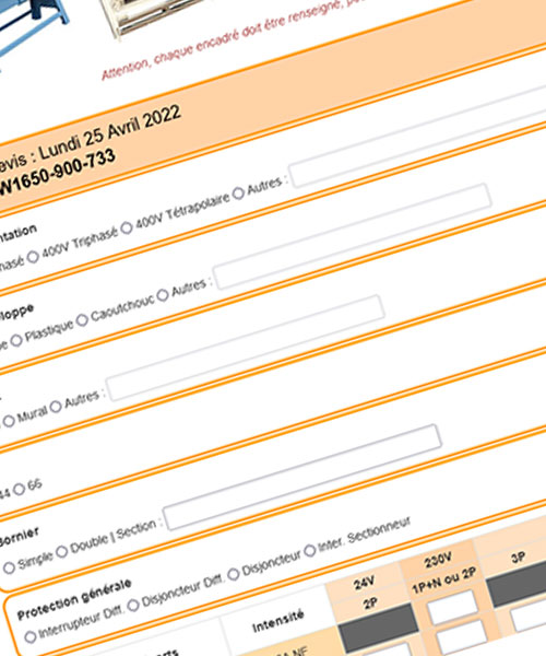 Faisons un premier point en complétant attentivement le formulaire "Devis Coffrets BTP", nous vous contacterons si nous avons besoin d’informations complémentaires.